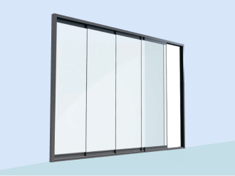 - Книжка. При открытии стеклопакеты последовательно складываются друг на друга, формируя компактный пакет. Это позволяет полностью открыть пространство и обеспечивает удобный доступ наружу или внутрь помещения.