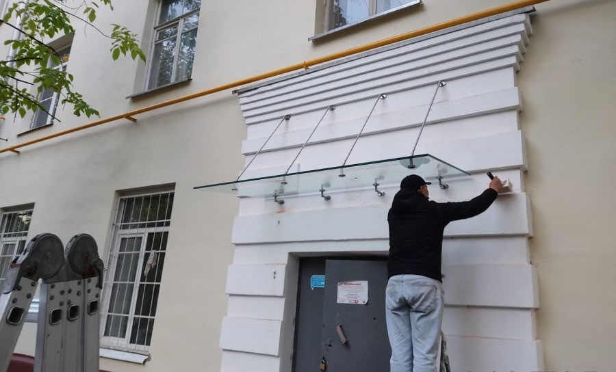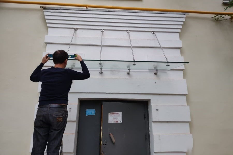 Нельзя не отметить и функциональные характеристики подобных сооружений. Для навеса над входом используется триплекс из закаленного стекла, способного выдержать испытания непогодой, механическое воздействие большой силы, агрессивное влияние солнечных лучей, температурные перепады. Подобный материал – гарантия того, что навес прослужит долго, сохранив свои основные характеристики, а также эстетичный внешний вид. Качественное стекло для изготовления навесов не мутнеет и не темнеет с течением времени.